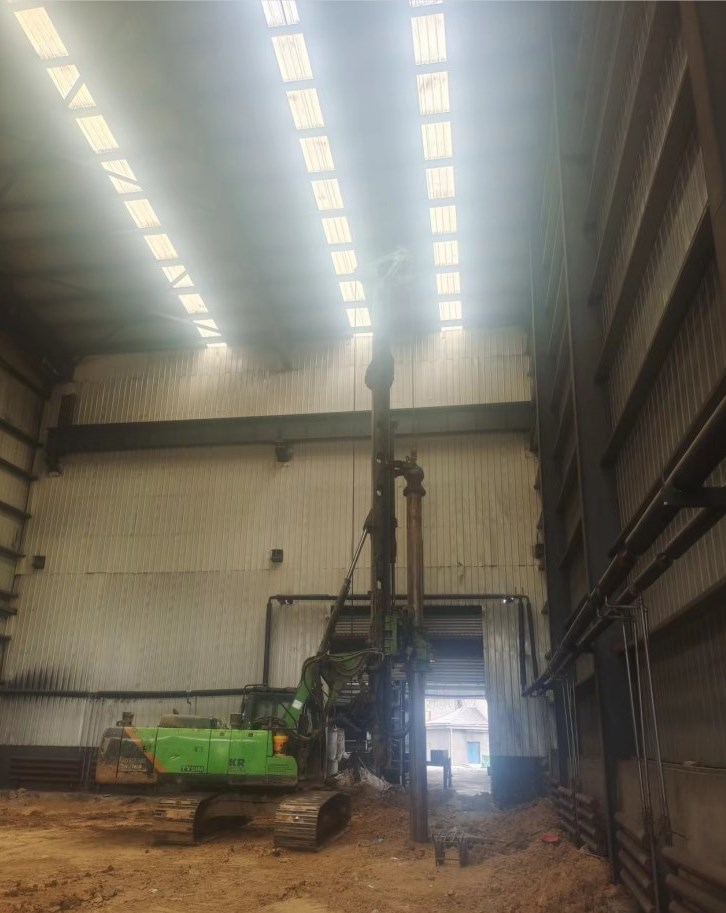 近日,泰信機械小型旋挖鉆機KR125A助力內蒙古某公司廠房改建項目。本項目在廠房內施工,限高15米,施工現場范圍狹小,泰信小旋挖125充分發(fā)揮了其產品優(yōu)勢與特點,順利完成施工任務,為客戶降低施工成本,縮短施工工期,贏得了客戶的一致好評。